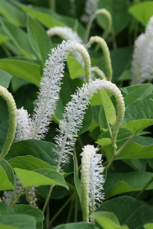 A North American native marginal aquatic perennial plant with lots of character and sure to be a conversation piece in the garden, Lizard’s Tail is great for use as a groundcover in sunny or shady wet and swampy areas or and the margins of lakes or slow moving streams, or in containers that can be submerged in the margin of the garden pond. Also called Waters Dragon, from late spring to late summer this plant features unusual looking spike-like racemes of fragrant white flowers that arch over like a candy cane above clumps of attractive heart-shaped leaves. The nodding flower spikes resemble a lizard’s tail, hence the common name. The flowers, leaves and roots of this plant have a generally pleasant citrus aroma so plant it near sitting areas where the fragrance can be enjoyed.